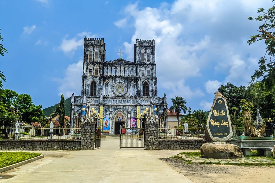 - Nhà Thờ Mằng Lăng – một trong những nhà thờ cổ nhất Việt Nam với lối kiến trúc Gothic giao thoa kiến trúc truyền thống. Nhà thờ Mằng Lăng là địa chỉ để quý khách tìm hiểu về cuốn sách Phép giảng Tám Ngày – Cuốn sách bằng chữ Quốc ngữ đầu tiên của Việt Nam.